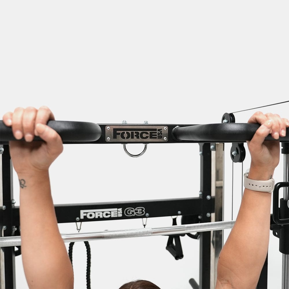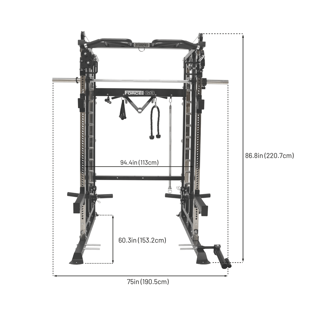 Introducing the all-new Force USA® G3® All-In-One Trainer, your ultimate strength and fitness solution! With a host of upgraded features and attachments, this compact powerhouse will transform your home workouts like never before. Get ready to experience the incredible versatility of the Smith Machine, Functional Trainer, Power Rack, Core Trainer, Multi-Grip Chin-Up Station, plus optional Upgrade Kits, all in one sleek home gym unit.