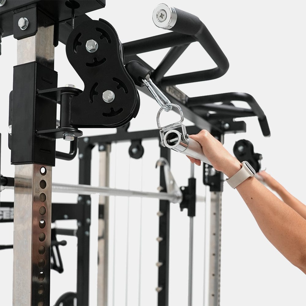 Force USA has made sure to add a wide variety of training aids so every session is different. Tough commercial quality cable attachments include a Long Straight Bar, Short Straight Bar, Nylon Handles, Tricep Rope, A Bar Row Handle, Landmine Core Trainer and more!