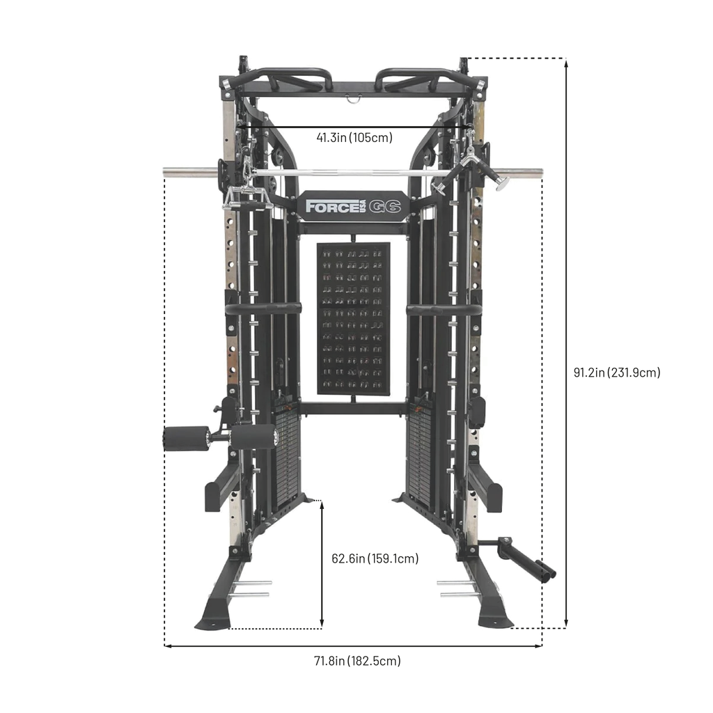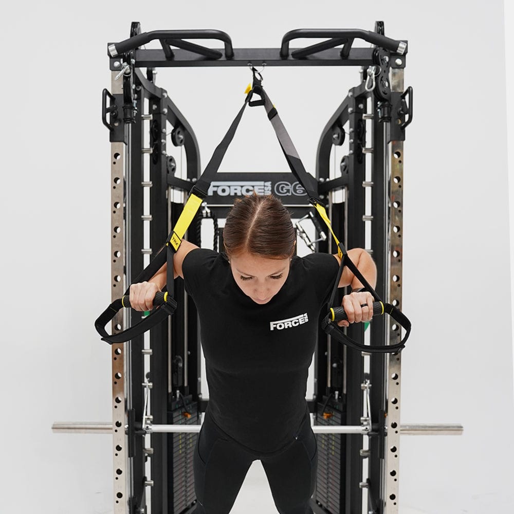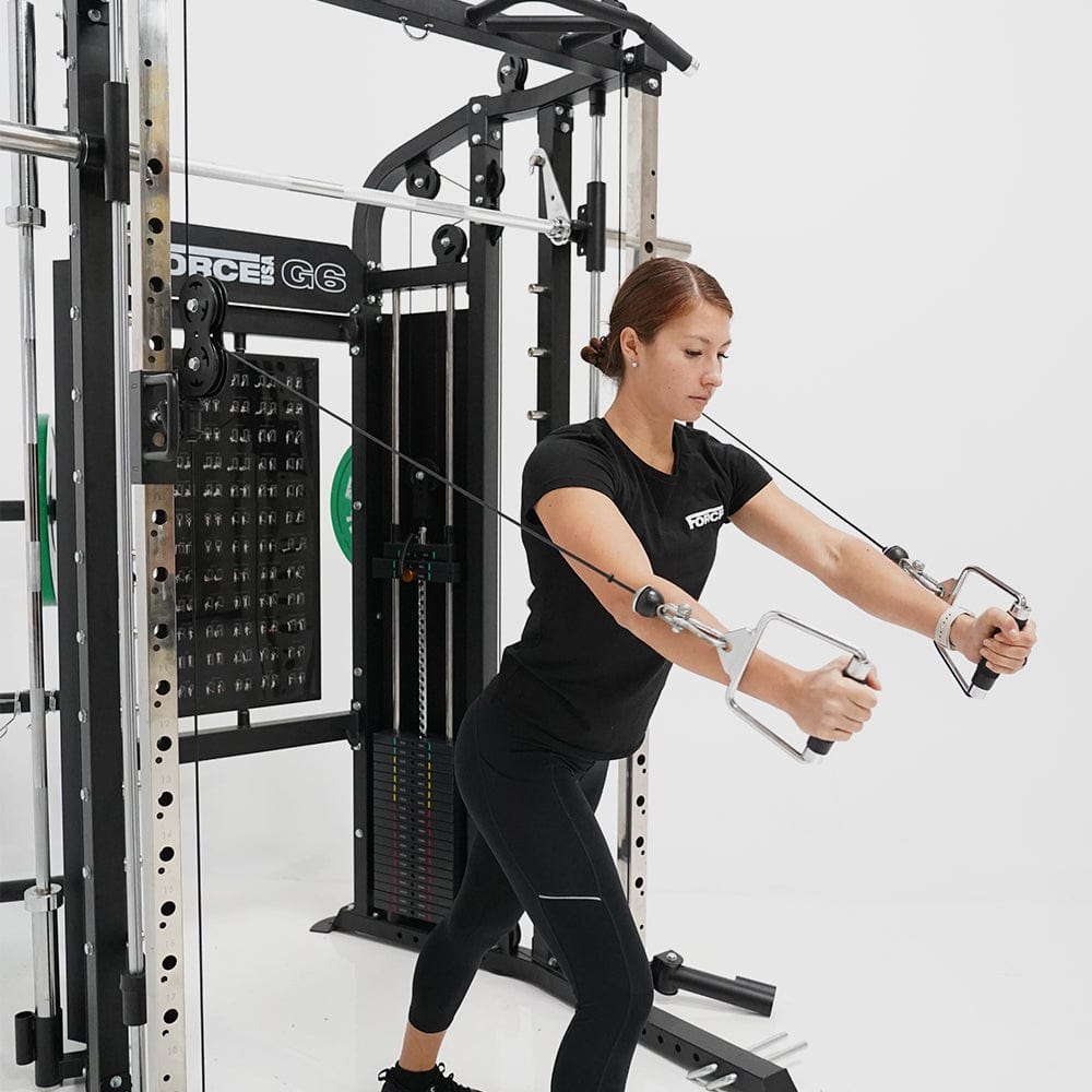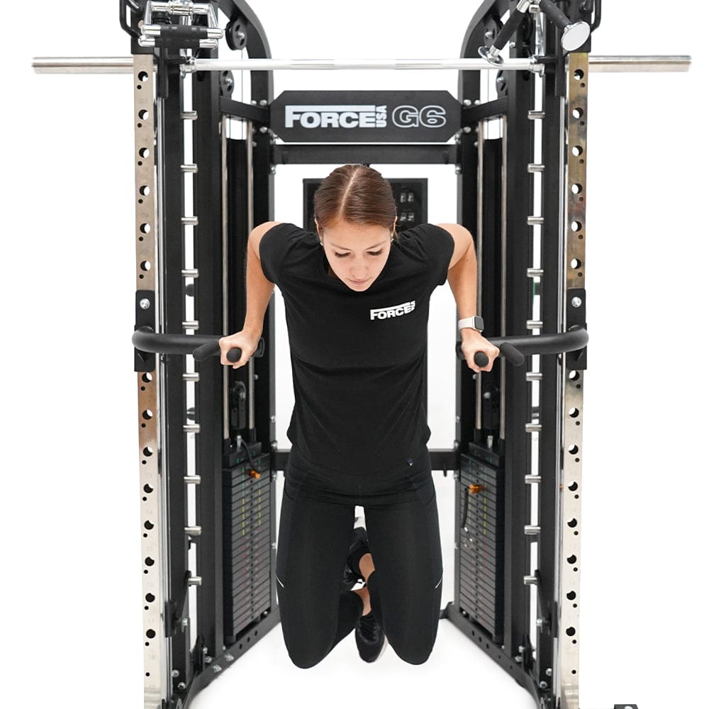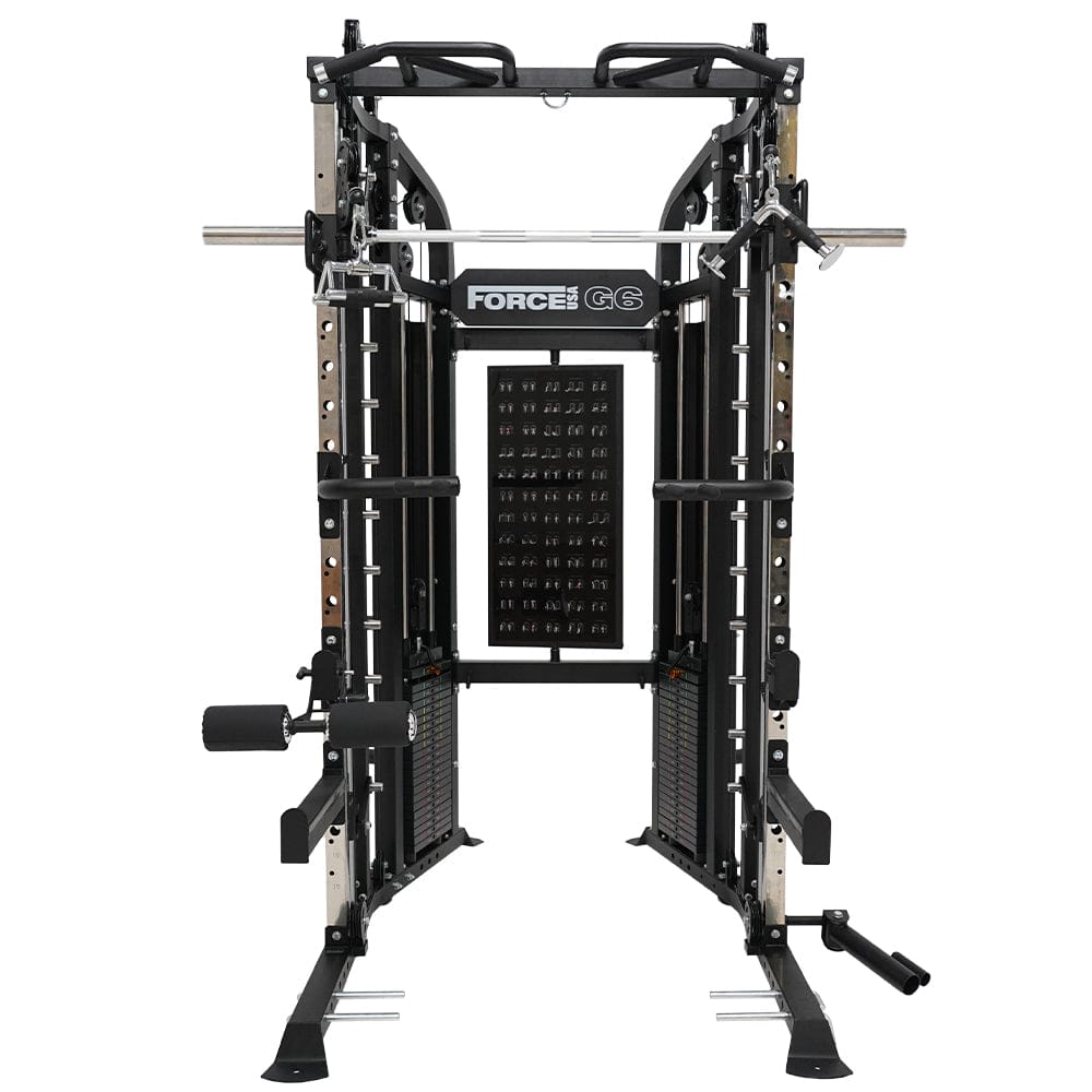 Take the next step in your strength training with the versatile, commercial-grade Force USA G6™ All-In-One Trainer. Combining a Dual 99.5kg Weight Stack, Functional Trainer, Smith Machine, Power Rack, Chin Up Station, Dip Station, Core Trainer, Suspension Trainer and Leg Press, plus a stack of attachments, this is a complete home training solution in a compact footprint. Engineered in our professional training labs and made with unbelievably tough heavy-duty steel, there’s nothing the G6™ can’t handle.
