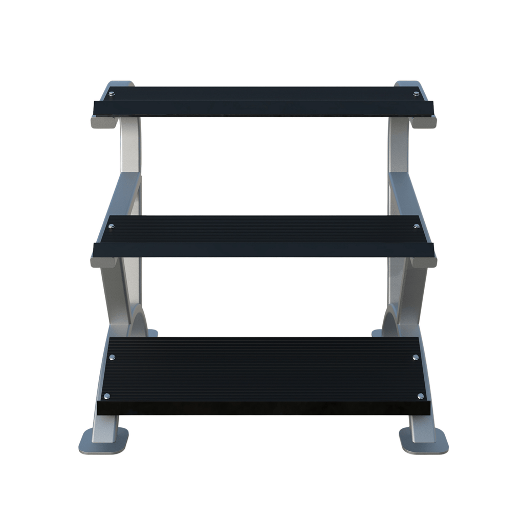 MORGAN 3-TIER RUBBER HEX DUMBBELL RACK - DELUXE The Morgan 3-tier rubber hex rack is a commercial-grade storage solution highly recommended for gyms and serious trainers. The rack is constructed with heavy-duty steel and works with a low, medium and high racking system with a spacious 3-tier design. This rack easily accommodates a complete set of rubber hex dumbbells, with room to spare. This rubber hex rack is extremely strong and heavy-duty. It is strong enough to hold the heaviest dumbbells with commercial strength and home gym price carry over. This Morgan 3-tier rubber hex rack includes rubber liners to reduce noise. Made from heavy duty coated steel Grip laying surface to ensure dumbbells stay where they are placed Can hold up to 400kg per tier as each tier has its own support beam Recommended for commercial application Dimensions: Top = 108 x 28cm Mid = 108 x 32cm Bottom = 108 x 34cm The total product measures 1.16m wide x 87.2cm deep x 1.02m high @ 50.5kg in weight