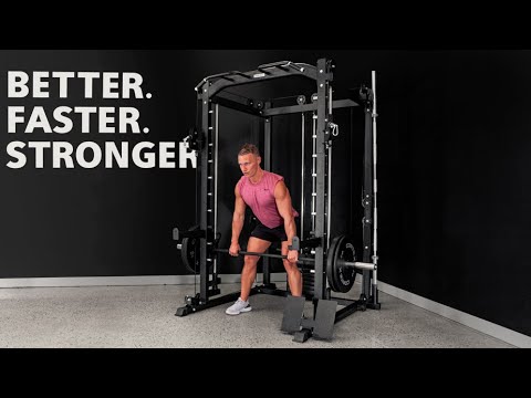Multifunctional 6-IN-1 Smith Machine, Power Rack, Barbell Landmine, Chin-up, Dips and Weight Storage.