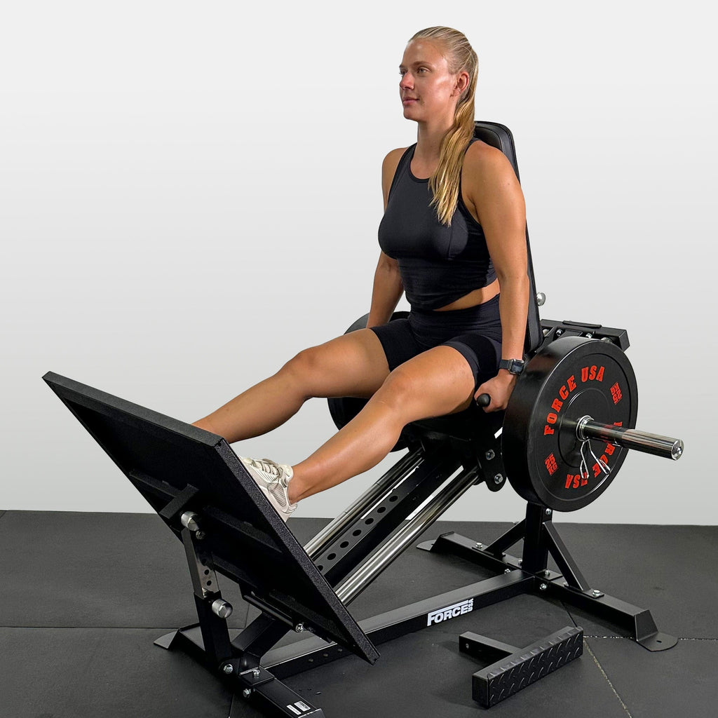 Get the complete leg workout in one machine with this versatile and space-saving piece of equipment. Designed for both home gyms and small fitness studios, this machine is the perfect solution for those with limited space. No need to compromise on the quality of your workout just because of space constraints. With the Compact Standing Leg Press & Hack Squat, you can target multiple muscle groups in your legs with ease and comfort. Whether you're looking to build strength or improve your form, this machine has got you covered.
