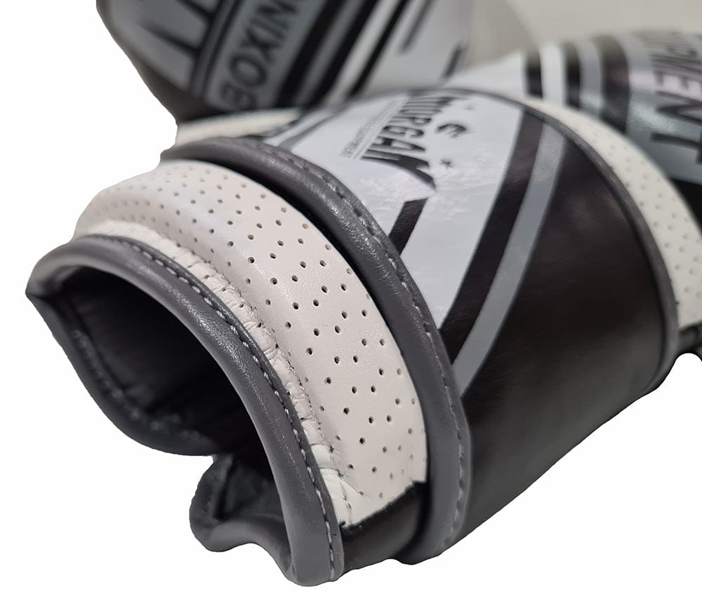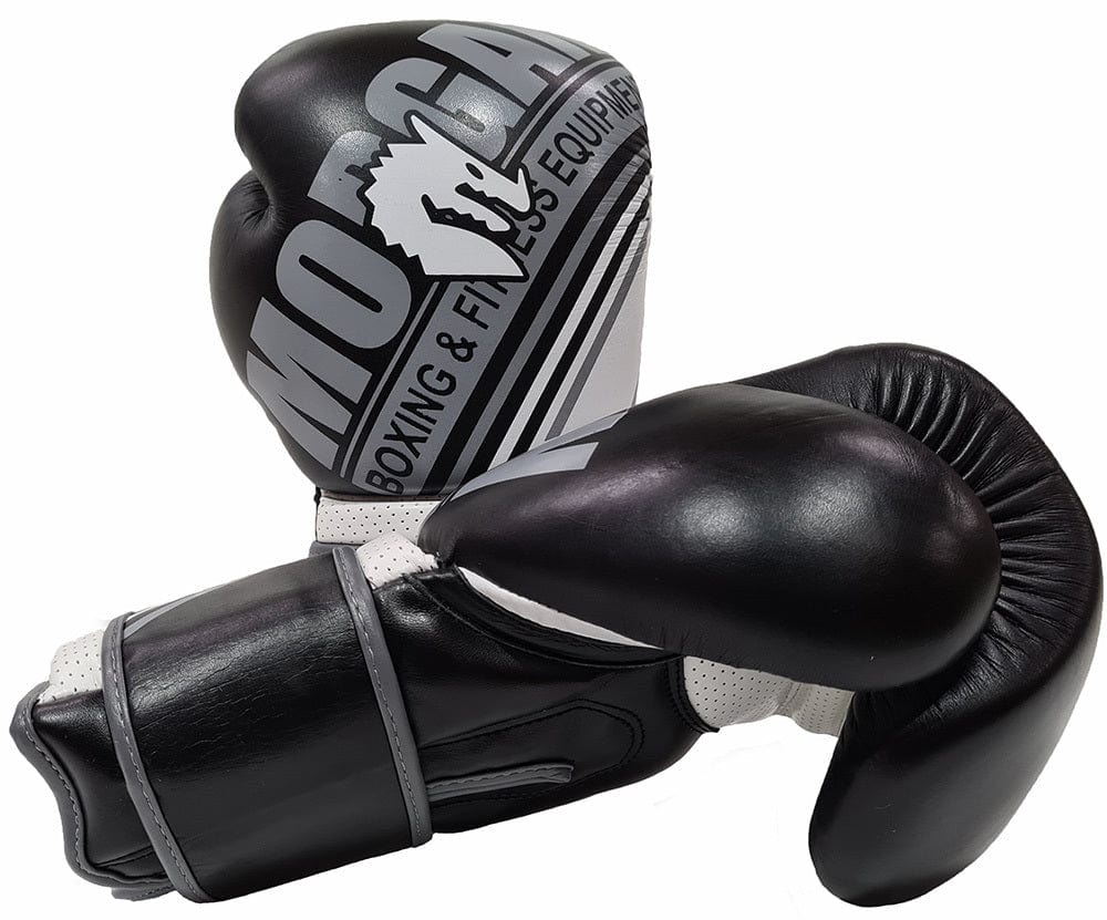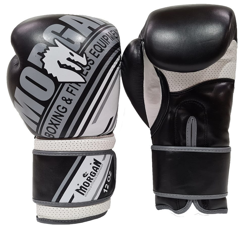 MORGAN AVENTUS LEATHER BOXING GLOVES (10OZ - 16OZ) [Black/White 14oz]