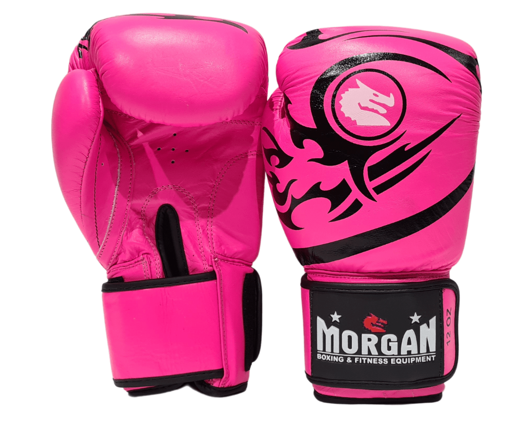 MORGAN ELITE BOXING & MUAY THAI LEATHER GLOVES (8 -12 & 16oz) [12oz Fluro Pink]