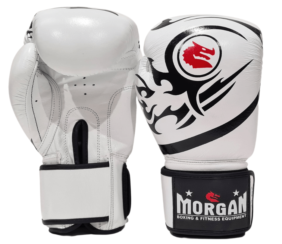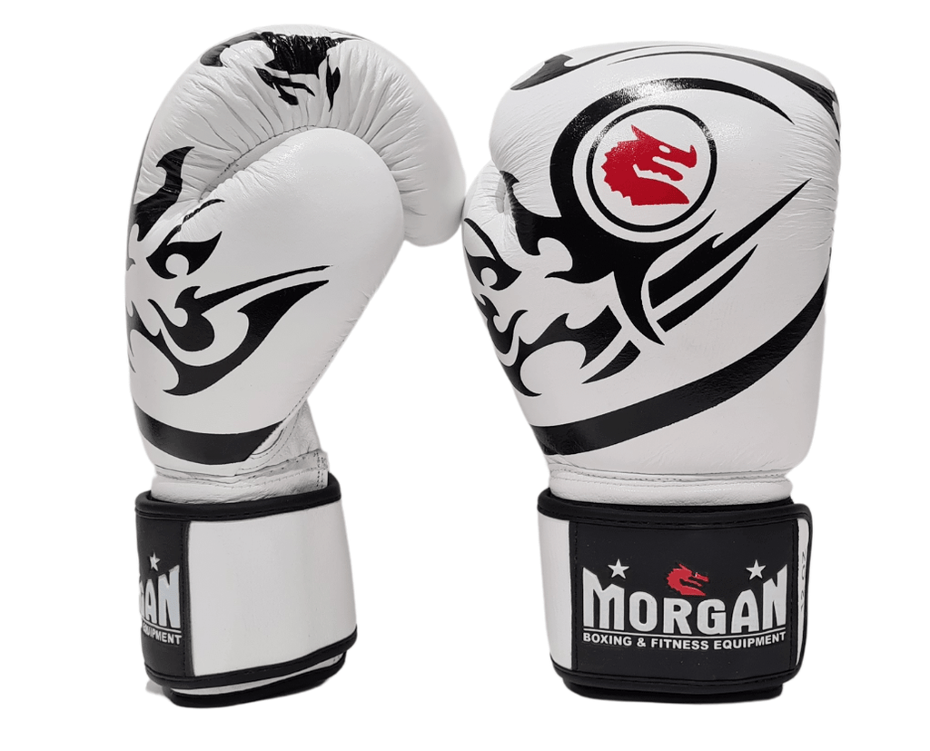MORGAN ELITE BOXING & MUAY THAI LEATHER GLOVES (8 -12 & 16oz) [12oz White]