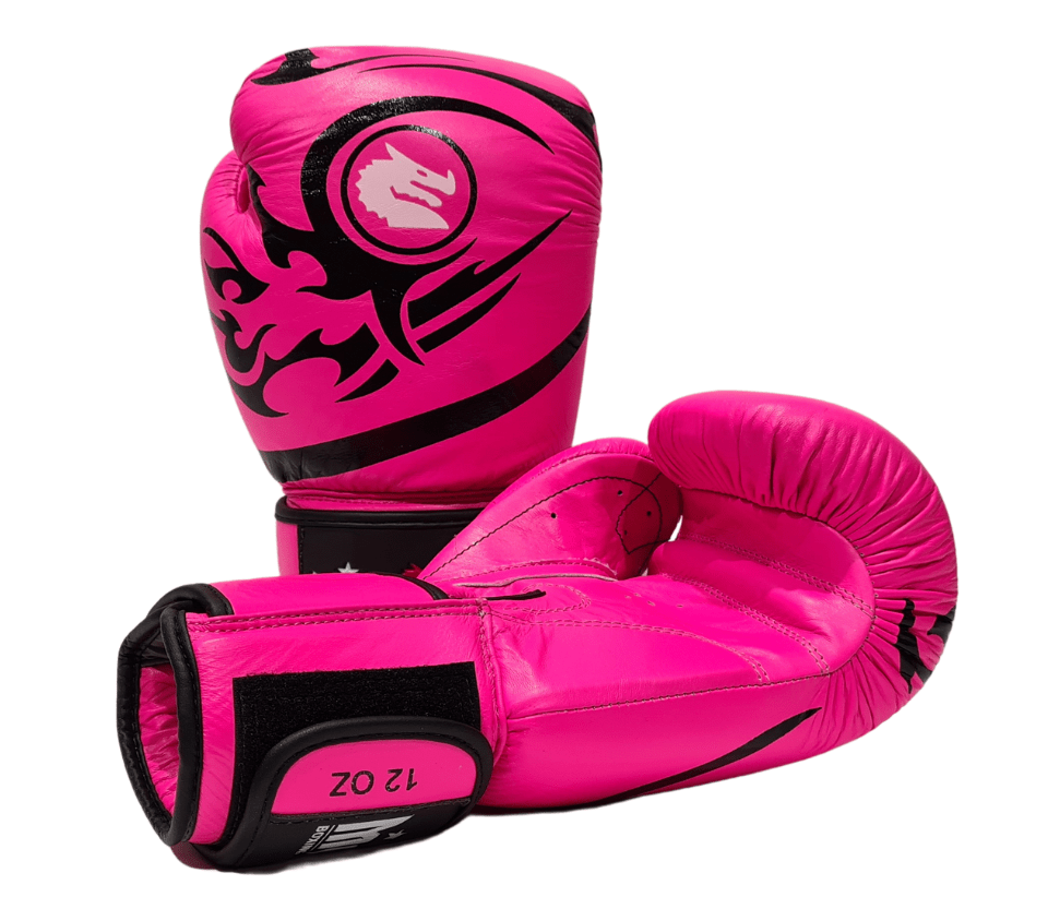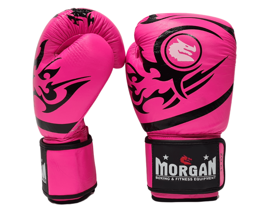 MORGAN ELITE BOXING & MUAY THAI LEATHER GLOVES (8 -12 & 16oz) [8oz Fluro Pink]