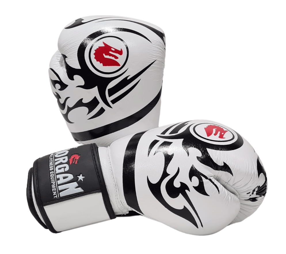 MORGAN ELITE BOXING & MUAY THAI LEATHER GLOVES (8 -12 & 16oz) [8oz White]
