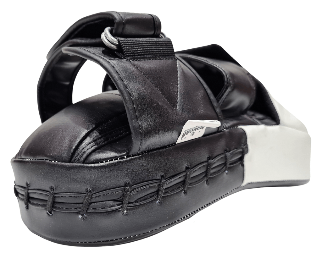 MORGAN HYBRID THAI/FOCUS PADS The Mogan Hybrid Thai & Focus pads are ergonomically designed Long Curved focus mitts that can also be used as a Thai pad, these hybrid pads will assist you in developing speed, accuracy and agility in your training sessions - with the ball in hand giving you more control over target placement, and an extended foam wedge assisting with comfort in the forearm area. Tested by Alex Volkanovski head coach Joe Lopez, Joe has found these pads ideal for not only continual travelling commitments but also for high level fight camp preparational training Features and Details: Long focus mitts for working all strikes (kicks & punches) Ball in hand compartment for grip Extended wrist strap with padded support 1.35cm Hood over finger for protection Extended 1.5cm foam wedge in forearm area for comfort Curved for the perfect catch whether kicking or punching 33cm long x 20cm wide x 4.5cm thick padding
