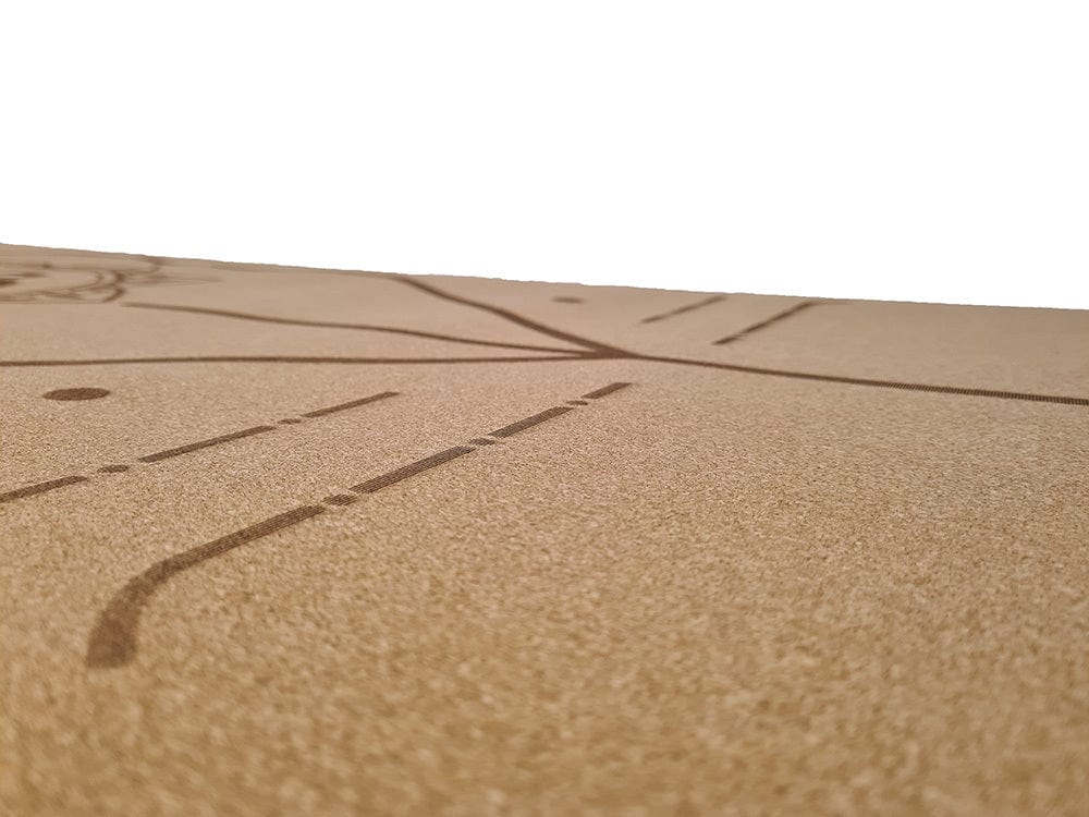 MORGAN NATURAL CORK YOGA MAT Work up that sweat without that crumbling, slipping, dragging towel! The Morgan Natural Cork Yoga Mat is an eco-friendly alternative to a typical mat. It is made from recycled natural cork ideal for eco-conscious yogis . Unlike regular mats which can take hundreds of years to decompose, cork yoga mats are more sustainable. The grip of this mat is excellent at preventing slippage during more vigorous workouts and is great for a sweaty yoga practise because of its natural antimicrobial properties. Uniquely designed with alignment lines and used by many yogi's, it helps you place your hands and feet properly and offer a guide for hip, arm, knee and chest alignment. The natural cork yoga mat is also durable, made from 100% organic materials without any toxic chemicals that might pose health risks. No adhesives are used in the production process as cork is heat fused to the rubber base without glue. It is also great for people with skin sensitivities because it has the most gentle touch against your skin of any type of mat. The Morgan natural cork yoga mat also has a soft and comfortable feel underfoot. This yoga mat is perfect for Pilates and yoga classes. It's very lightweight and can be taken on the go as it folds into a compact size. It's also perfect for foam rolling, core strengthening and other active recovery exercises. Why we love it: Grippier with sweat - great for hot yoga Alignment guides on the mat From sustainable farming (made from the bark of trees) Clean and germ-free (cork does not mould, that's why we stuff it on our wine bottles) Non-toxic (bottom layer is PVC-free rubber) Size: 183 cm by 60 cm Thickness: over 4 mm Care instructions: Before first use, please wipe down with a damp cloth to remove any residue ink To clean, wipe down with a damp cloth Don't put in the washing machine or scrub down the surface to avoid damage If the mat feels smooth before your practice, wipe it with a damp cloth or moisten your hands. It will become grippier once you start moving and sweating