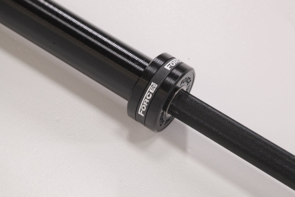 The Force USA The Gunner Barbell has added grooves in the sleeves holding our ForceUSA branded silicon bands. If you have your own customised bands with matching dimensions you can swap out the ForceUSA bands with your own for easier identification if you own a range of bars. Or simply to show off your own brand. This is very beneficial for clubs, coaches, personal trainers and athletes.