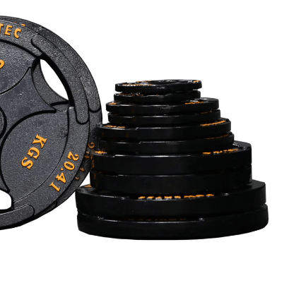 Powertec’s 255lbs iron Olympic weight plates incorporate easy to carry handles for increased safety and ease of use. Each of the 14 plates, are finished in a rust resistant Jet Black coating. The innovative, patent pending design allows the weight of each plate to remain visible even when stacked. The increased visibility makes it easier to keep track of your weight load.