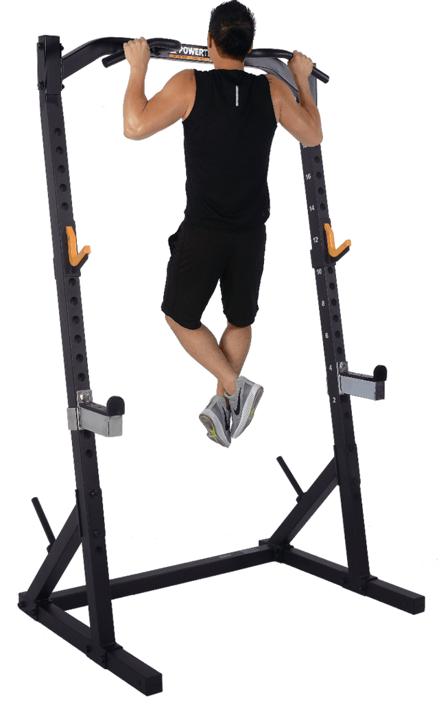 You have the option to add the dip handles attachment for various dip exercises. You can further customize your Rack to include the optional Workbench-Utility Bench and Lat Tower Option (REQUIRE Connector WB-LTO-HR18-CN) which will allow you to expand your home gym further with a full range of exercises. Second image shows new Lat Tower Option.