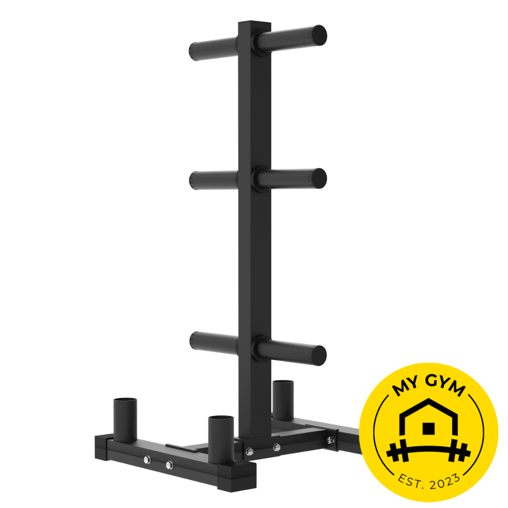 Optimize your home gym with this My Gym Olympic Weight Plate Tree. It features 6 holders for olympic weight plates and 4 olympic sized barbells, providing you ample storage for the most comprehensive weight training routine. With this tree, you can keep your workout space organized for a more efficient workout experience.
